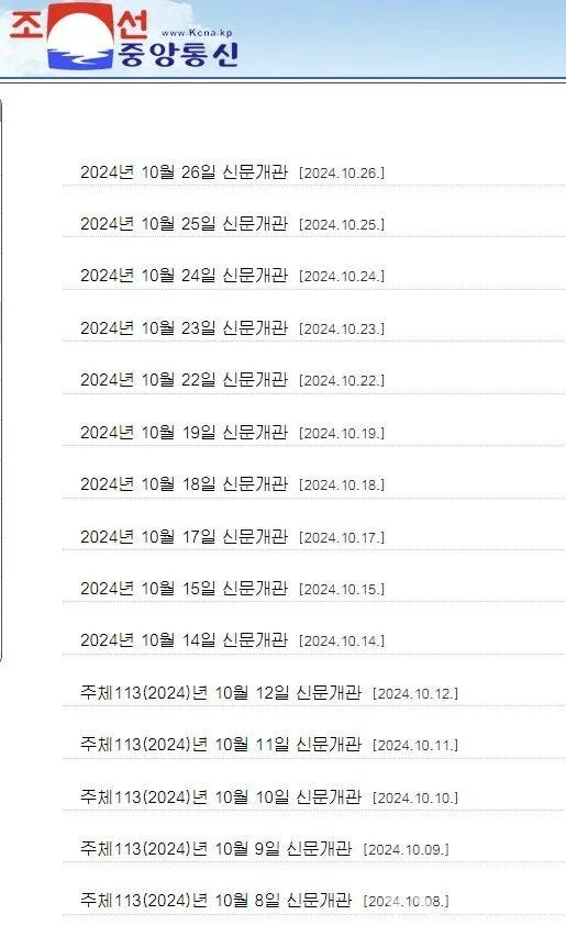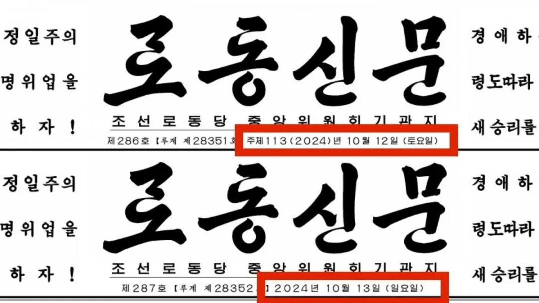 10月12日上午出版的《劳动新闻》,报头还写着"主体113(2024)",10月13日起就只剩公元纪年了。