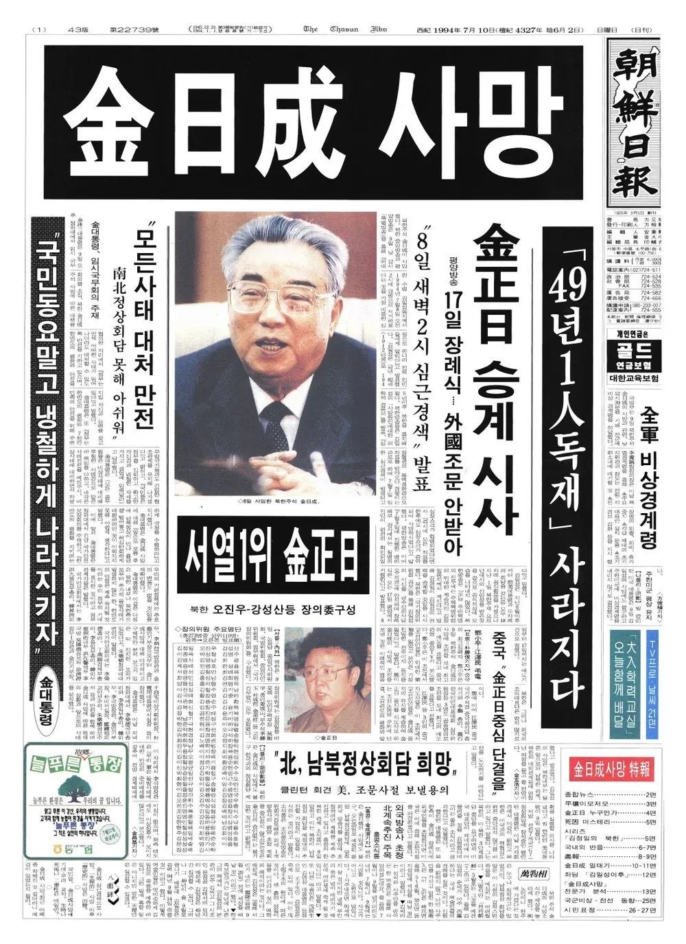 1994年金日成去世,全国进入守丧三年的"遗训统治"时期,并且开启领袖的"永生化"进程。主体纪年作为领袖崇拜的重要象征,也被提上日程。